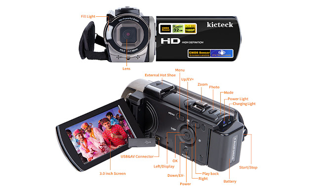 2) GREAT PICTURE QUAILTY FOR THOSE BEGINNERS YOUTUBE STARS - When this video camera camcorder arrived I was impressed with the size of the device. The device comes with two (2) batteries, a carrying case, and a video input port cables/power supply. The HD 1080 quality makes it a great addition in recording/taking amazing pictures. Its a great camera/camcorder for those YouTube stars in your family. The sound quality is outstanding and the quality of the picture is fantastic. This camera/camcorder is great for new beginners because its truly user friendly. If your looking for a great video camera for a great price, I'm sure your future YouTube star will appreciate it.